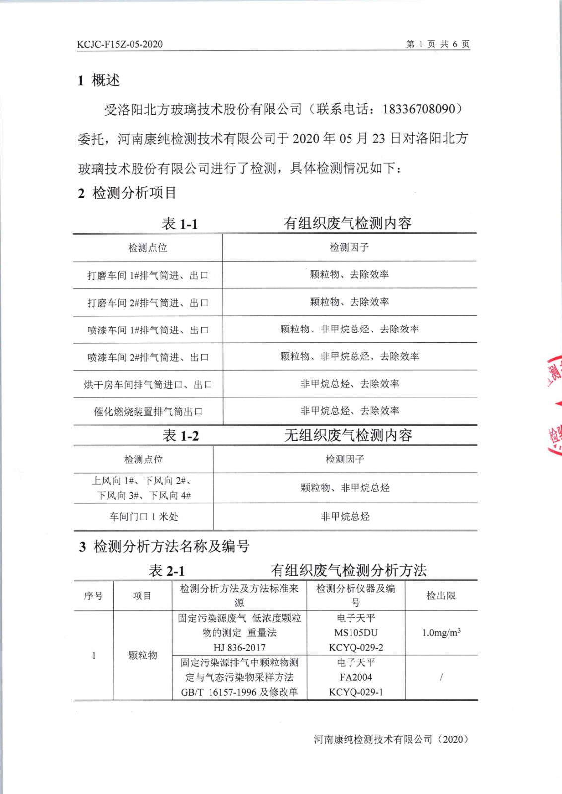 洛陽北玻廠區廢氣檢測公示