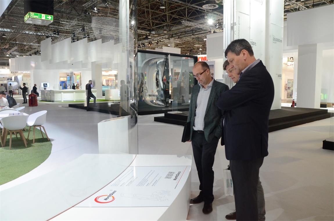 北玻,作為入選的中國企業,展出了這塊由天津玻璃公司帶來的8米超大弧長夾層彎鋼化玻璃?!斑@次展會很成功,展出效果超出我的預期。”歐洲業內知名人士評價到。說到這塊玻璃,北玻股份公司副總裁、天津玻璃公司總經理高琦滿滿的自豪:“這次展會對于天津玻璃公司來說,是個契機。我們是一個創新型的公司,這幾年一直致力于新產品研發,我們的玻璃無論從創新還是從產品質量來說都是無與倫比的,北玻此次的展出旨在能夠讓歐洲企業了解北玻品牌”。